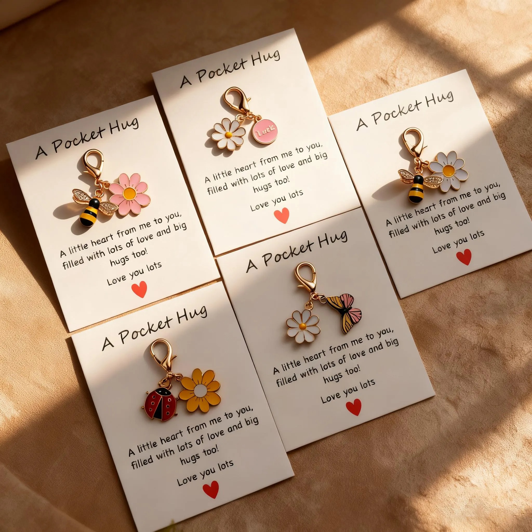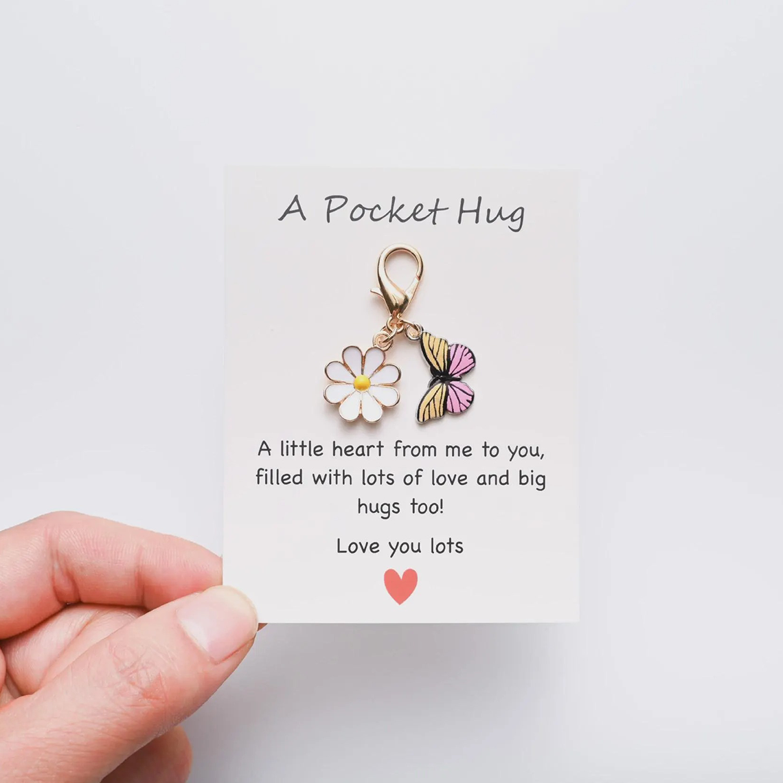 🎁This adorable pocket hug keychain, adorned with charming daisies, gentle butterflies, happy bees, or lucky ladybugs, is designed for those moments when words fail to express love, but love still wants to be felt.